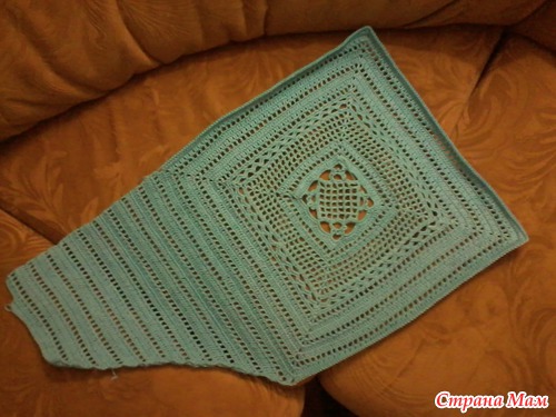 вот уже хороший кусок правого нижнего треугольника готов, здесь у меня закончилось 100 гр нитки)))))