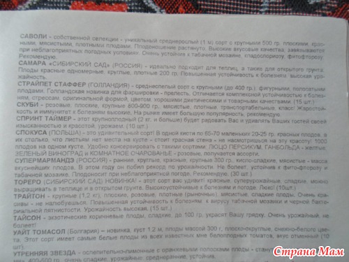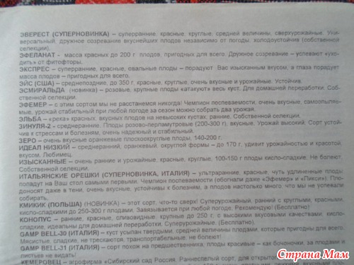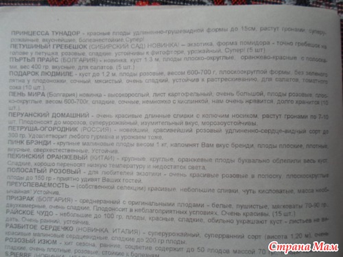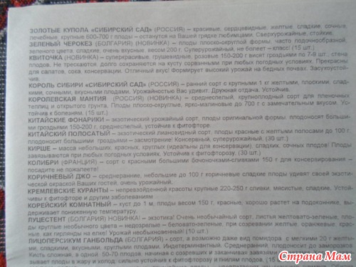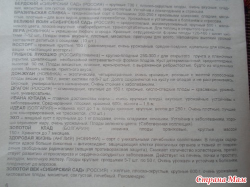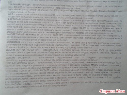 Не могу сказать, что я абсолютно довольна всем,- некоторые сорта можно было-бы и дешевле высылать, - но есть у него и такие сорта, которых больше ни у кого нет.