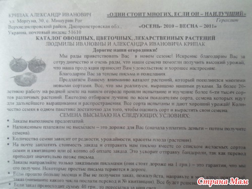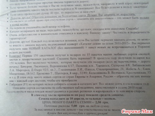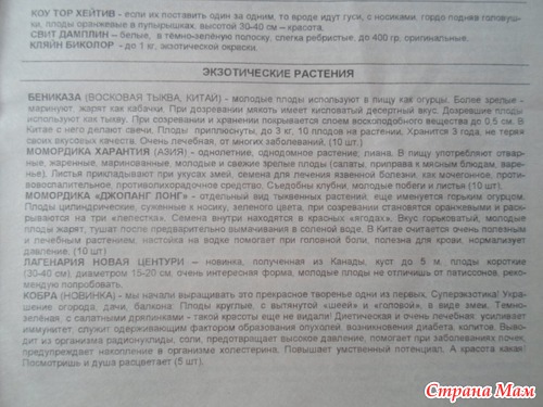 Обмана никакого не было, еще и бесплатно бросает десяток на пробу разных сортов. В прошлом году не выписывала, т. к. в позапрошлом выписала на 100 грв, семена все можно собирать самим.