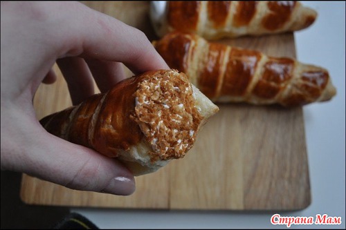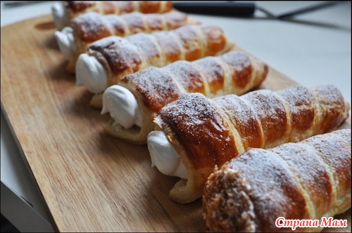 - Выкладывать трубочки на противень лучше "швом" вниз, чтобы во время выпечки трубочка не раскрутилась.