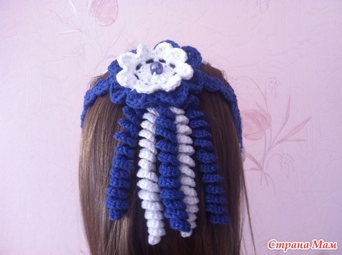 ) Что здесь меня больше всего удивило, так это то что схема к той повязке совсем другая, но я решила связать по той что там прилагалась. Вязала я по кругу, без завязочек!