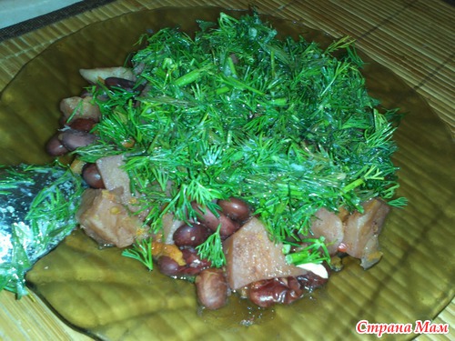 Фасоль замочить на 3 часа, затем отварить до полуготовности (примерно 40 минут), воду слить.