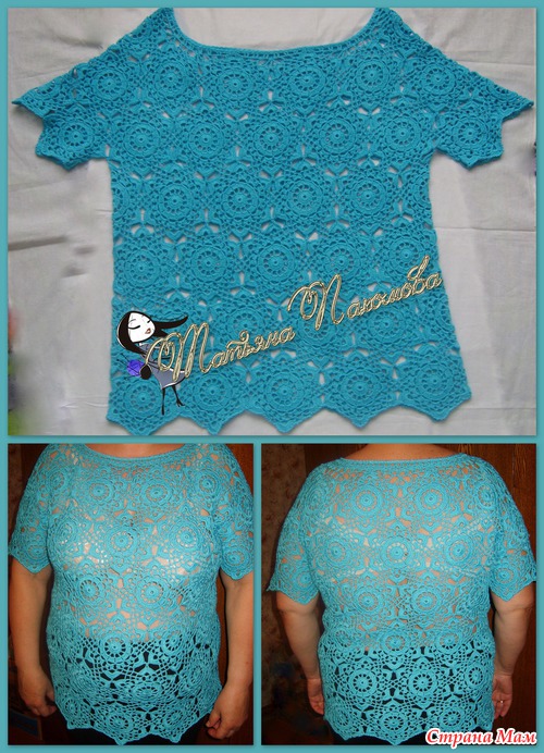 Ниточки Мерсеризированный хлопок "Камтекс", расход 400 гр, крючок №2. Вязала на обхват груди 120 см