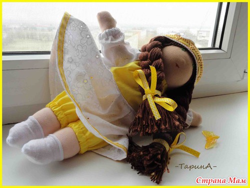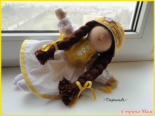 Куколка "Стефанушка" сшита из натуральных материалов: кукольный трикотаж светло-телесного цвета пр-ва Нидерланды, набита натуральной овечьей шерстью, одежда сшита из натурального хлопка и шапочка связана из 100% хлопка Макси. Интересные пуговички и репсовая лента в качестве украшений.