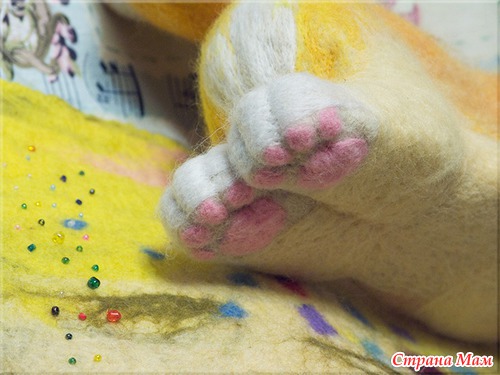 Нужно еще одним слоем цветной шерсти обработать, а то некрасиво будет выглядеть на фото.