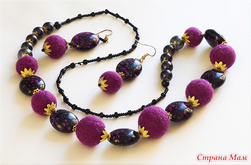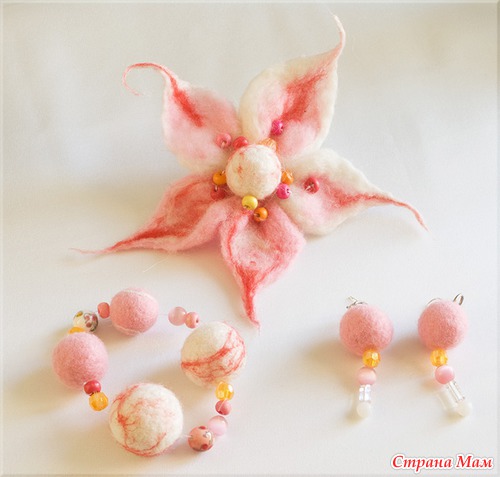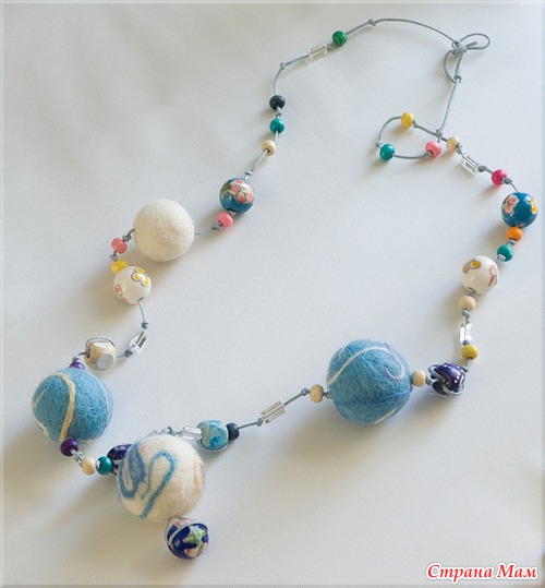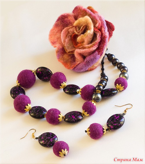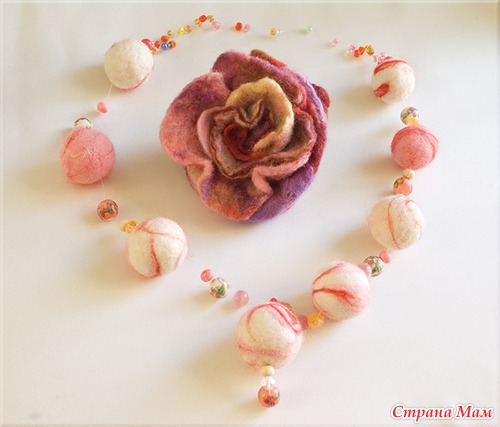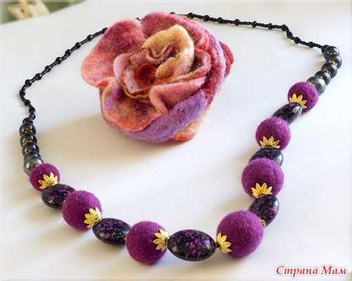 Мои первые эксперименты в этой области рукоделия - это брошка и бусы методом мокрого валяния. Их подарила, не успев сфотографировать. А вот следующие "экспонаты" участвали в выставках.