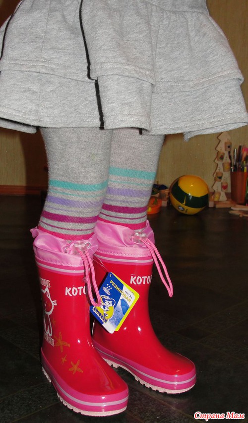 И такие резиновые сапожища у нас. Я в них не разбираюсь, но выглядят прикольно, мелкой нравятся и материал хороший, даже поверять не собираюсь, верю Котофею, у нас любовь с первого раза