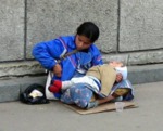 На следующий день я стоял в переходе возле станции метро Л. Милиционера, ответившего мне вчера ругательством, не было видно. Я запасся журналистским удостоверением, и был готов к серьезному разговору. Но разговора не получилось. А получилось следующее… У женщины на руках лежал ДРУГОЙ ребенок. Мои вопросы попрошайка попросту игнорировала с отрешенным лицом. Меня интересовали документы на ребенка, и, самое главное – где вчерашний малыш? Попрошайка вопросы игнорировала, зато их не игнорировали торговки, стоявшие рядом. От женщины, торгующей трусиками, я узнал, что мне следует, мягко говоря, удалиться из перехода. К возгласам торговки подключились ее негодующие соседки по ремеслу. Следом за ними – прохожие преклонных лет. В общем, я был с позором выдворен из перехода. Оставалось одно – звонить 02 или искать милицейский патруль. Но милиция нашла меня сама. Сержант, любитель посылать в…, подошел ко мне и спросил документы. Я документы предоставил, и высказал свое мнение по поводу нахождения женщины с ребенком в переходе. Сержант со мною согласился, и… отправился звонить кому-то. Я стоял перед переходом, с полным ощущением того, что пытаюсь бороться с ветряными мельницами. Спустя несколько минут в переходе не было уже ни торговок, ни попрошайки со спящим ребенком… Когда вы видите в метро ли, на улице ли женщин с детьми, просящих милостыню, задумайтесь, прежде чем ваша рука полезет за деньгами. Подумайте о том, что не будь вашего и сотен тысяч подаяний, и бизнес этот умер бы. Умер бы бизнес, а не дети, накачанные водкой или наркотиками. Не смотрите на спящего ребенка с умилением. Смотрите с ужасом. Ибо вы, прочитавшие эту статью, знаете теперь – почему спит ребенок