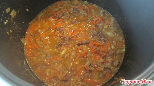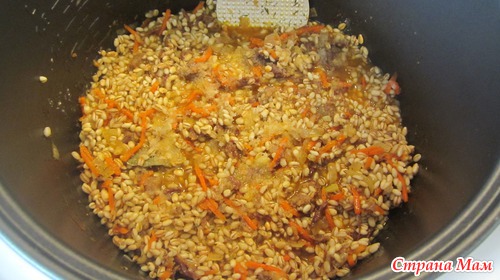 Затем убавить огонь и тушить пока не выпарится вся жидкость и перловка не станет мягкой (примерно как на плов) минут 40 на медленном огне.