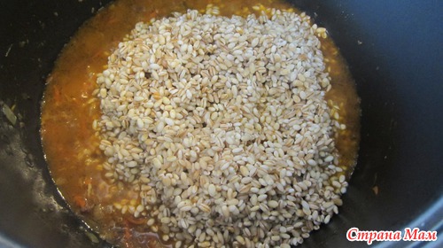 Перловку заранее хорошо промыть и замочить на 2 часа в холодной воде. Если времени нет, то можно в горячую воду на 30-40 минут.