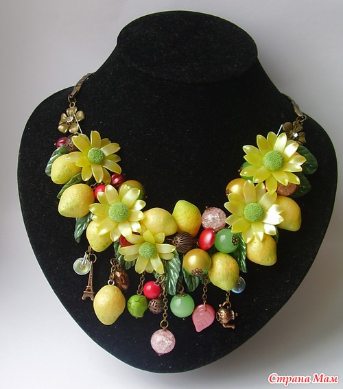 Красиво! и название такое загадашное))) Чудо просто! Я вот смотрю-смотрю на твои работы, в стиле "бохо", да,? Я не ошиблась))) И думаю-думаю а это дело все не тяжелое? Шея от такой красоты не устанет? А еще-лимончики такие аппетитные!!!