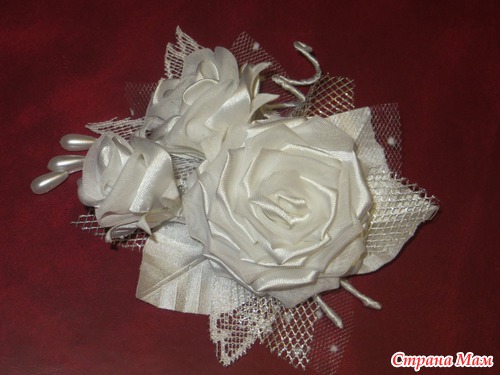 Так давно хотелось сделать браслетик, но не хватало всяких там прибамбасиков. Когда я всетаки его соорудила, как то само собой еще колечко вышло и тут меня понесло дальше, замахнулась на колье - получился комплект. Его сразу дочка себе забрала, мол к моему платью самое то!!! В догонку сделала бутоньерку, использовала только материалы белого цвета. Всем спасибо кто заглянул.