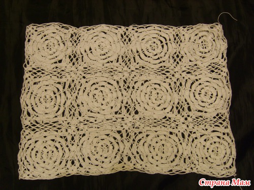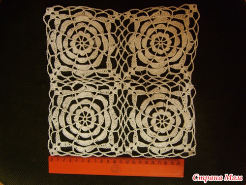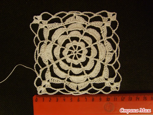Я буду вязать ниточками "Виолет" 280 м/50 гр, крючок №1.25. Связала первый мотив (последний ряд не вязала), получился 12 см