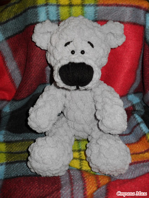 плюш был таким толстым (аделия долли в 100гр\40м), что я долго не могла подходящий крючок найти. на этикетке только спицы указаны 7-7,5. Я пользовалась крючком №6, хотя подозреваю, что можно было и потолще взять.