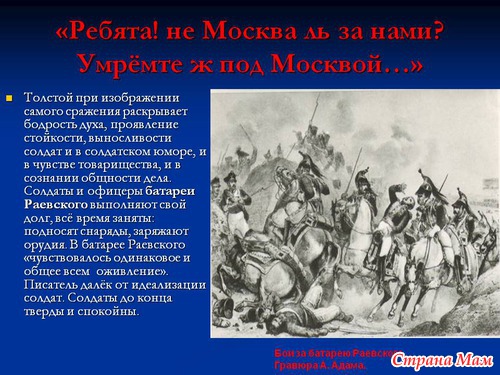 13. Всей мощью своего таланта Лев Толстой навалился на французских оккупантов и высмеял их, да так, что они отступили.