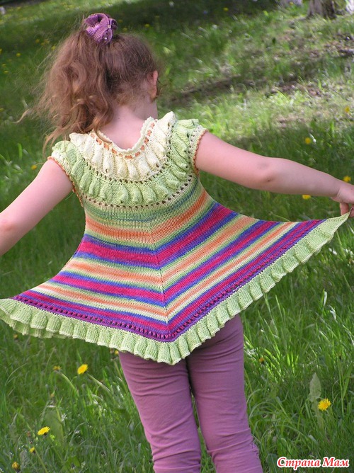 "Туника связана сверху. По точкам расширения - имитация декоративного шва.