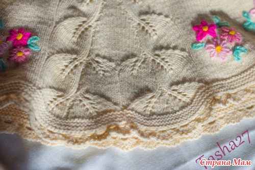 Хочу показать вам одно из моим последних вязаных изделий для дочки. Это платье связано из пряжи Пехорка "Престижная" 225 м в 50 г в две нитки на спицах 3. Ушло около 5 моточков. Платье связано регланом сверху (очень удобно вязать особенно для деток). Юбка расширяется за счет клиньев (5 обычных и 6-ой сзади на полосе из листьев). Идея реглана подсмотрена у Svetlana Volkova в Bloomsbury kids (проект на Равели).