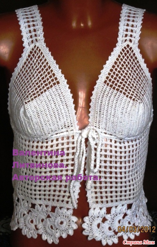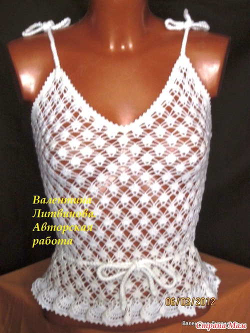 К летнему сезону предлагаю имеющиеся в наличии топики, связанные крючком из 100% хлопка. Модели авторские. Дизайн разработан в соответствии с модой на наступающий сезон. Ажурность рисунка позволяет чувствовать себя комфортно и удобно в жаркую погоду.