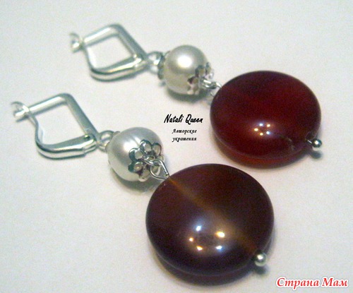 Очаровательный и яркий комплект из бусин-таблеток сердолика и шариков жемчуга.