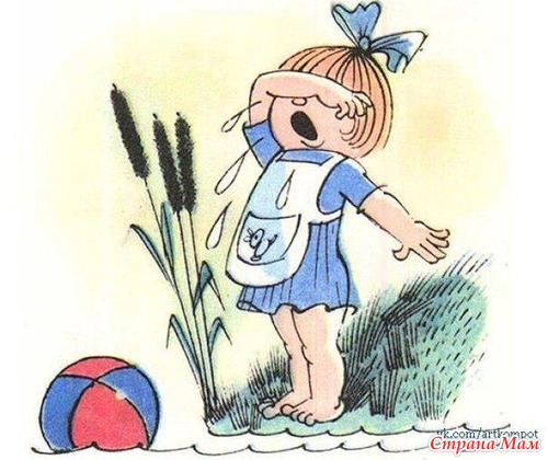 Плачет о мяче, укатившемся в пруд.