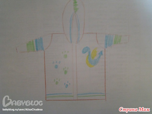 Эскиз был таков, может кто воплатит, мы с заказщицей решили что аппликашки на получившейся кофте лишнее