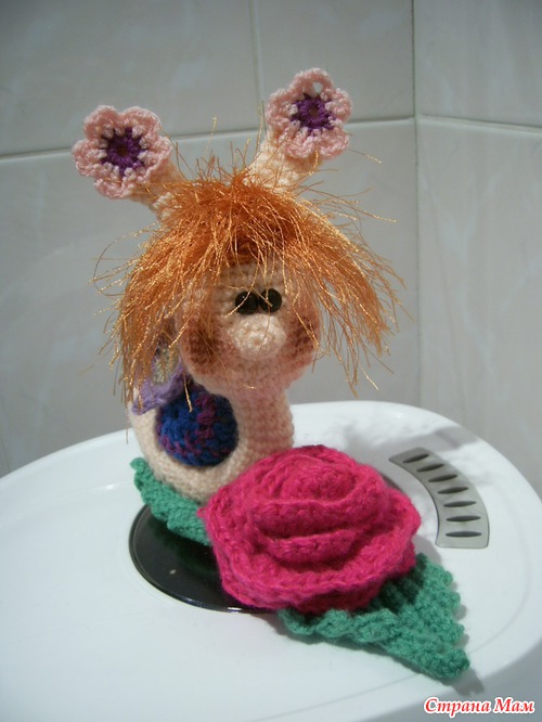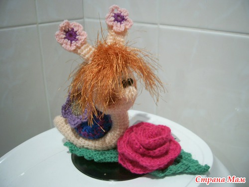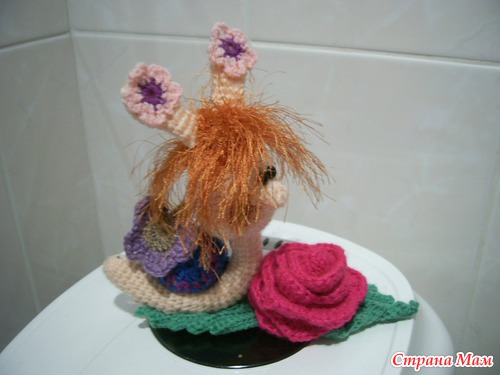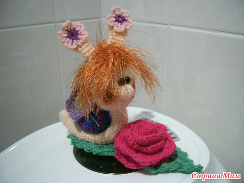вообще-то прическа должна была быть с вытянутых петель,но у меня подходящей пряжи не нашлось