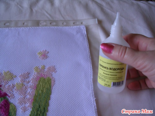но я не сильно расстроилась уже опыт имеется, начала действовать, расстелила на столе ткань на неё положила файлы (не нашлось у меня чего-то большого непромокаемого), сверху разместила свою работу, взяла перекись водорода 3% и залила где было видно не отстиравшийся маркер, в основном это по краям