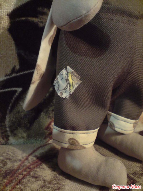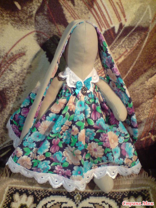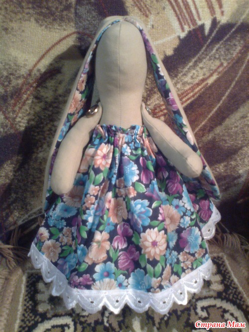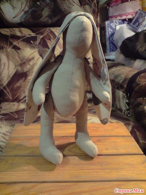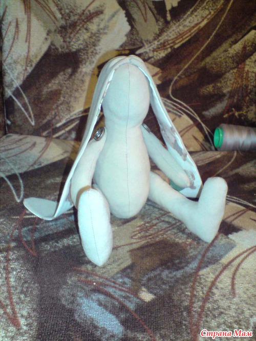 Сделала выкройку на бумаге, приложила к зайцу, покраила, наметала, померила, что не подошло откорректировала, в общем смотрим..