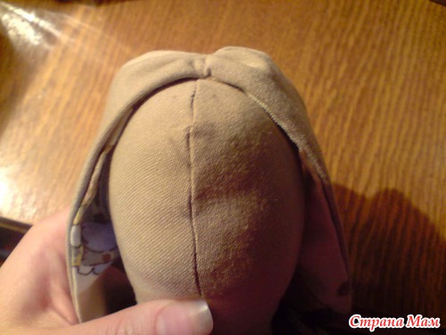 Зашиваем ушки.., немного собираем их и пришиваем к голове.