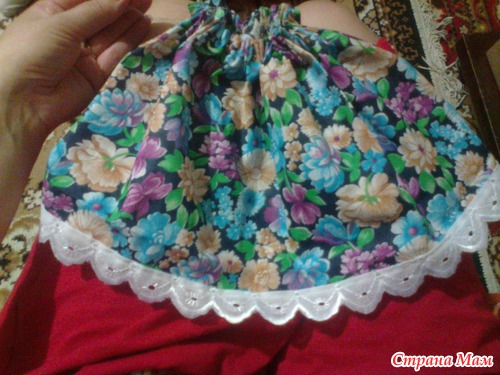 Остаточек кружева, крепим сверху, заводя за шею. Пришиваем.