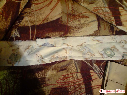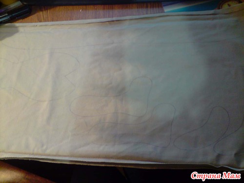 Прошиваем. Прошу заметить ручки и ножки прошиваем полностью. Ушки я начертила совместно., для обратной стороны использовала ткань такую, которая будет использоваться в одежде.