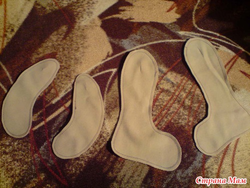 Складываем пополам лицевой стороной во внутрь, прошиваем только ножки.