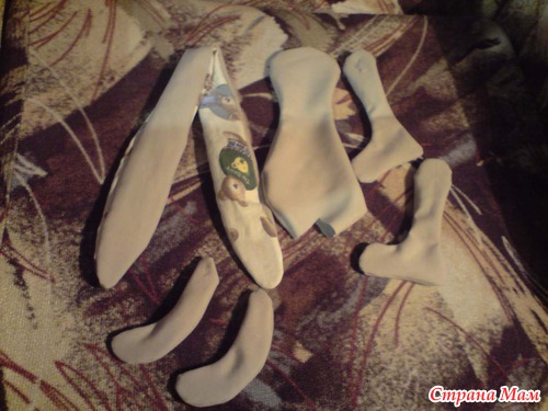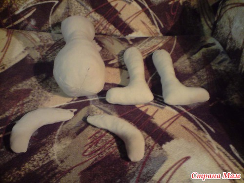 На ручках и ножках делаем отверстия, чтоб вывернуть!