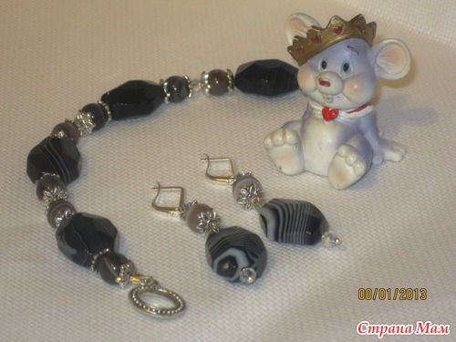 Комплект "Черный лебедь" (бусины черного и серого агата):