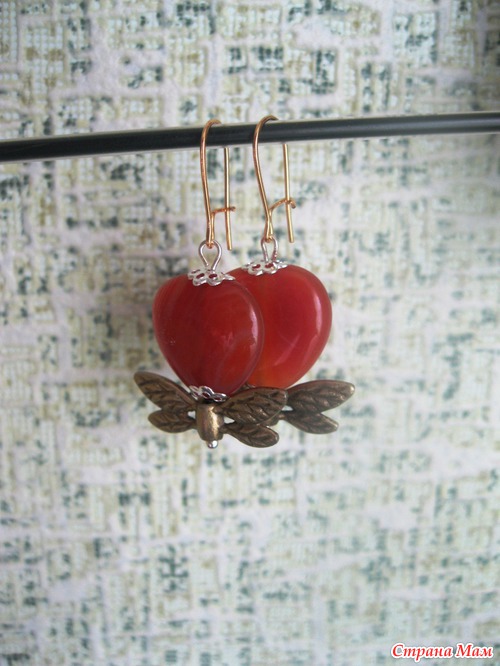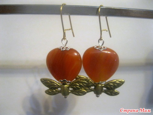 Серьги "Крылатое сердце" из сердолика: