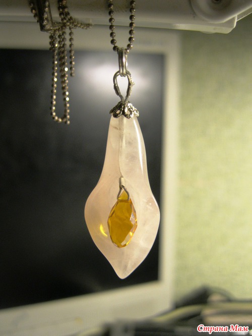 Кулон "Розовый лепесток" из розового кварца и циркония: