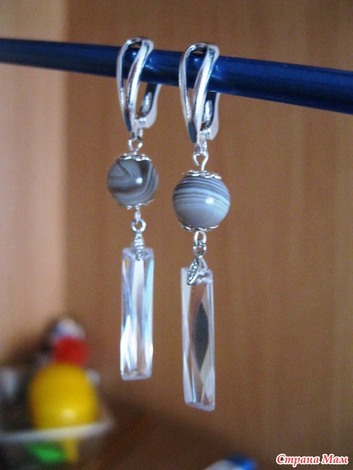 Серьги "Красотка" (циркон и серый агат):