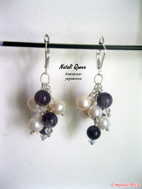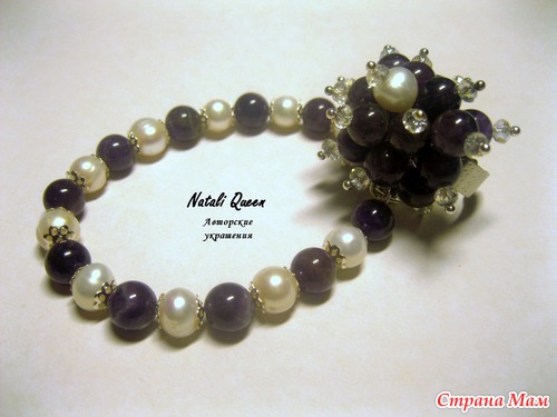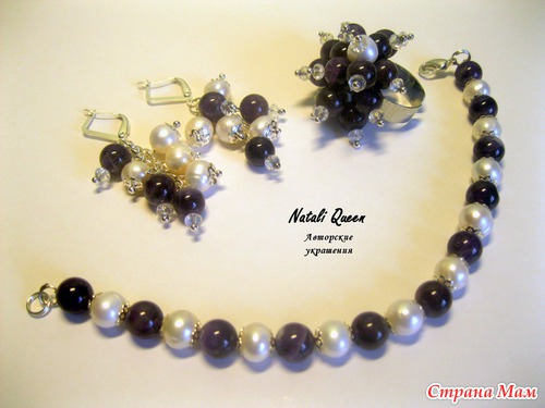 Комплект из аметиста, жемчуга и хрусталя: