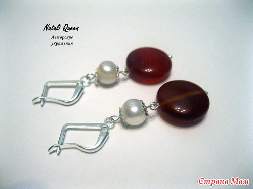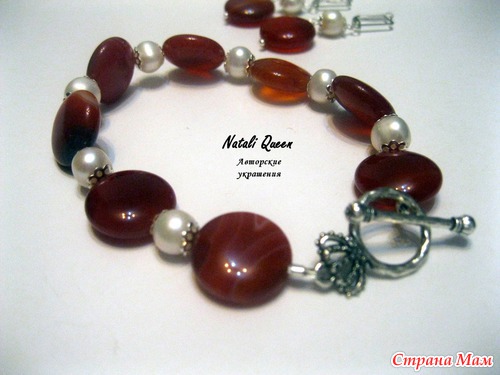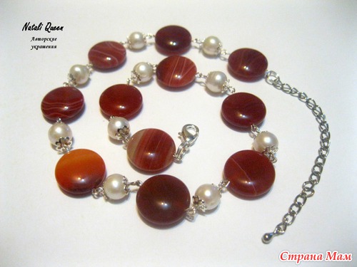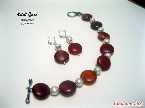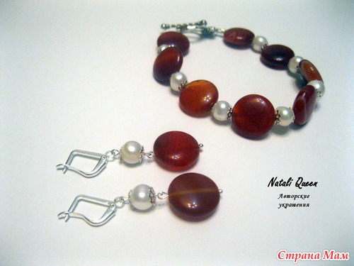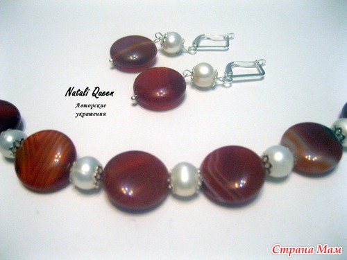 Комплект "Яркое лето" из сердолика и жемчуга. В руках смотрится как искорки снега на конфетах))