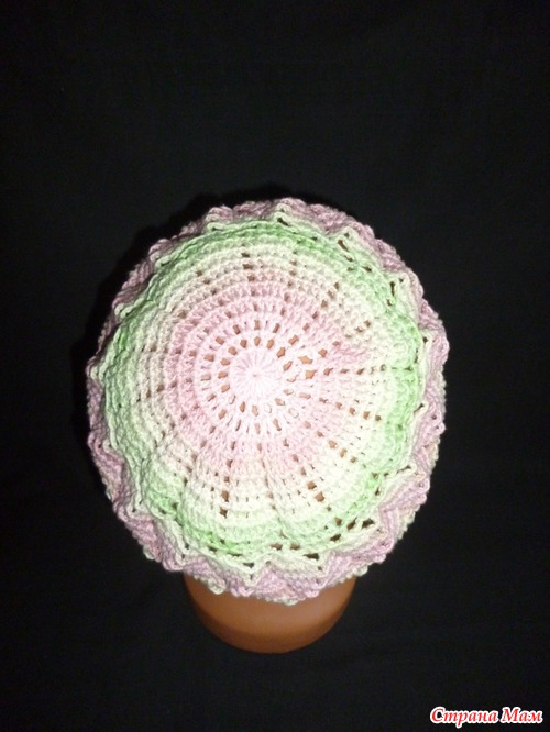 Просила я помощи в поиске береточки на весну и отклинулись, а буквально забросала меня ими Алефтина-Значит это я, за что ей огромное спасибо. Ниточки Белла Батик (Ализе), ушел роно моток, даже на цветочек не осталось. Крючок №2. Скажу сразу, что с одного мотка беретка выходит на 3-4 года, не больше. Ещё совета вашего хочется, цветок сюда напрашивается? И если да, то форма и цвет его. Или оставить так же?