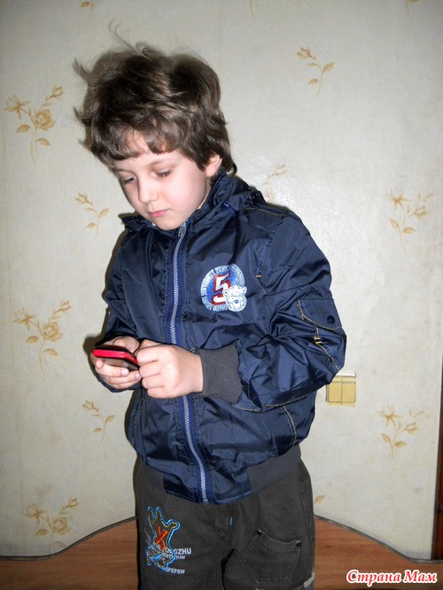 Штаны нам широковаты, и естественно, длинноваты, и рукава здесь подвёрнуты по-максимуму, но к осени будет в самый раз