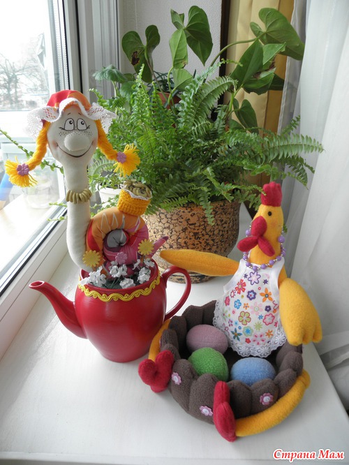 Я просто соединила 2 варианта курочек :-) Выкройка тильды курочки , а идея отсюда http://www.liveinternet.ru/users/4709964/post266241761/ . Мне курочка тильда больше нравится :-)