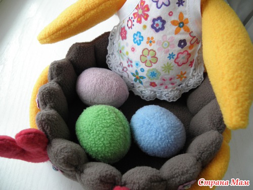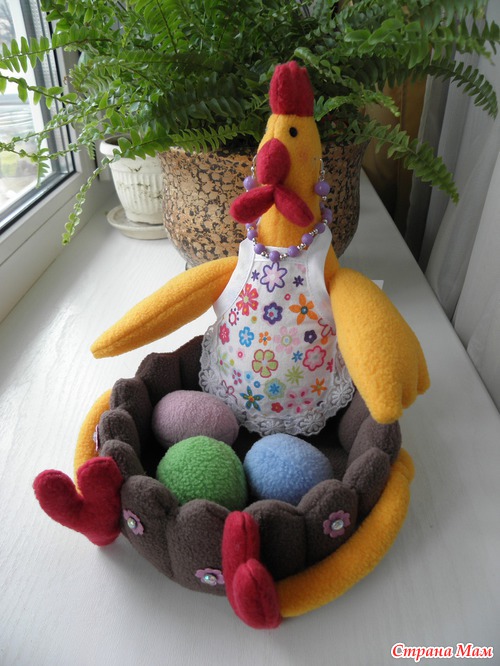 Вот такая пошилась у меня пасхальная курочка. Материал -флис. Высота 21 см, ширина 21 см. Так как мне еще заказали улиточку на кухню, то курочку я делала в одной цветовой гамме, получился как бы набор :-) [ Читать полностью