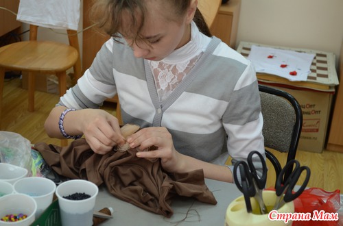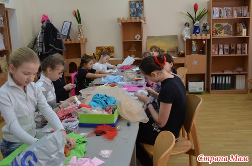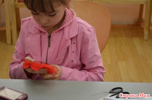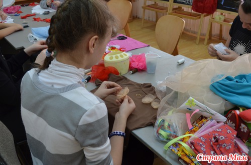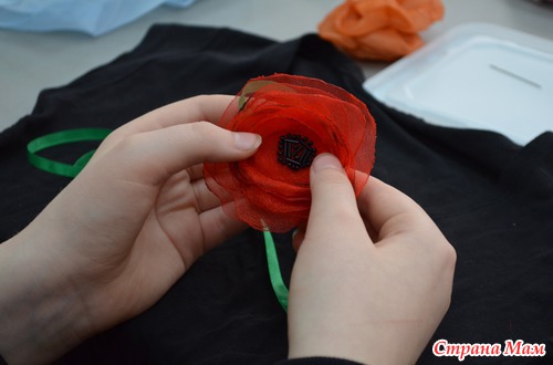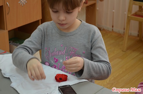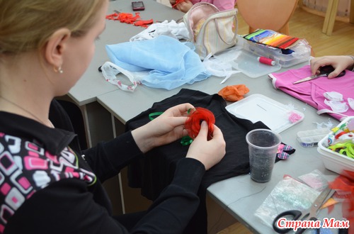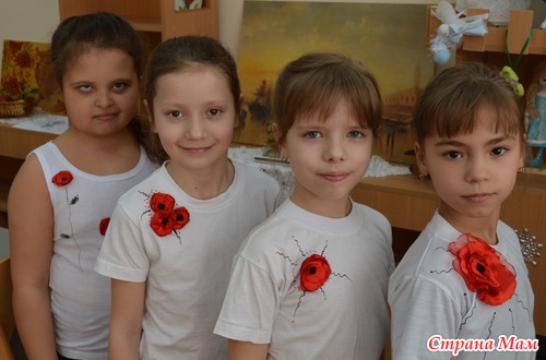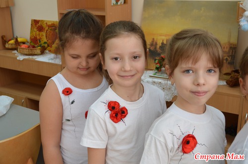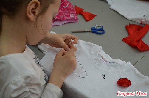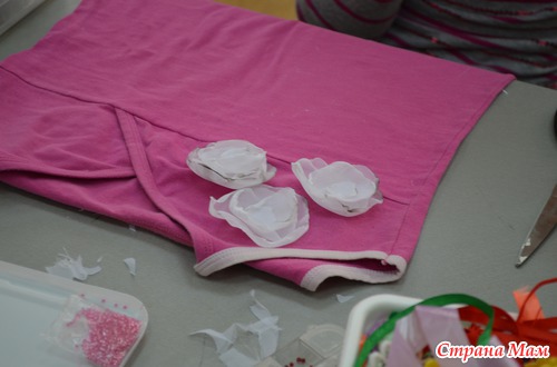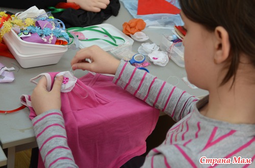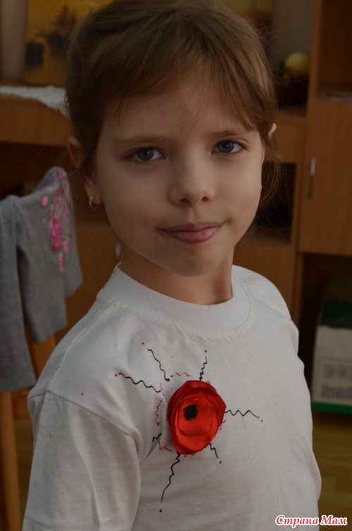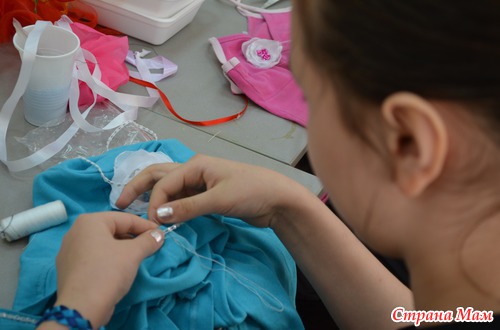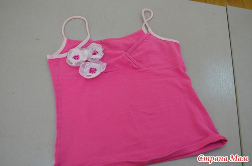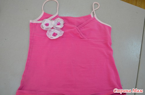 ...Я бы на голубой маечке цветок посередине прикрепила. Или выше к плечу