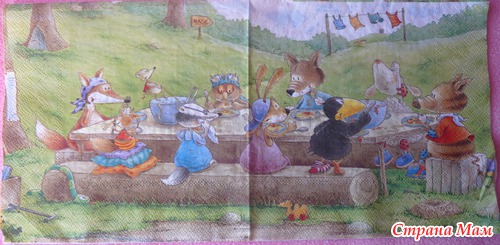 Именно так меня выручили салфетки на кухонную тематику, когда надо было СРОЧНО что-то такое придумать - знакомые купили новую кухню, пригласили на просмотр, а чего-то подходящего в наличии не было... Вот тогда-то я вспомнила про эти салфетки...