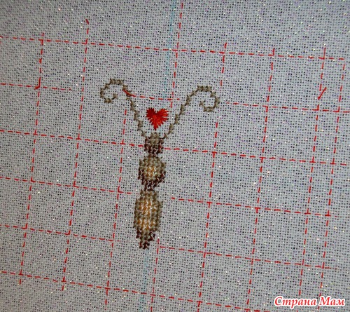 Причем, по схеме надо делать в 2 нити Крейника + 1 нить мулине голубого цвета...
