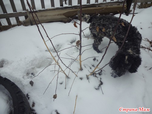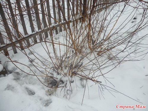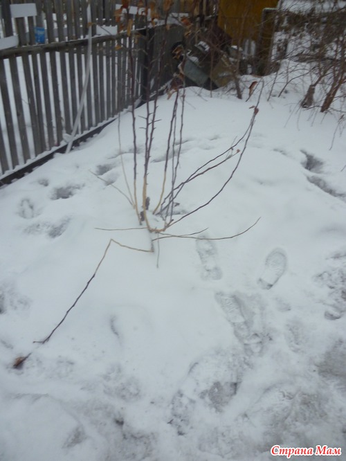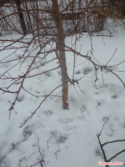 А вишня на двух ножках до сих пор под снегом. Не знаю любят ее мыши или нет. Это еще предстоит увидеть.