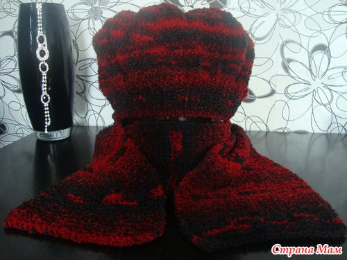 Связался для мамы берет и шарфик, пряжа FUNNY 100гр 170м,20%шерсть,73%акрил,7%полиэстер, спицы 3,5, ушло 2мотка. Мои впечатления пряжа не очень понравилась в вязании, постоянно цеплялись нитки, когда вязала постоянно ловила себя на мысли поскорей бы она закончилась, ну а смотрится конечно хорошо.