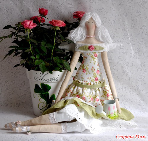 Моей самой первой куклой, как впрочем у большинства кукольниц, была кукла Тильда! Очень давно таких не шила, даже соскучилась..! Но терпеть больше не было сил и пошилась она - моя любимая цветочная фея! Очень нежная, легкая и свежая, как весенний слегка прохладный ветерок!