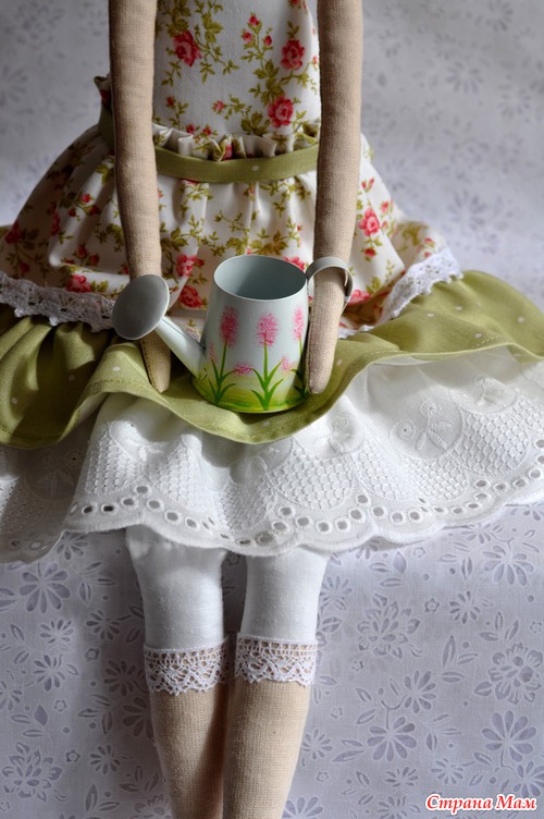 Рост её 60 см. Ткани все натуральные, леечка металлическая. Цена 1350 рублей.